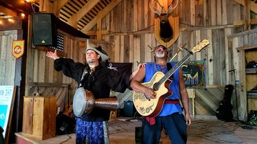 Pirates Creed, voted #1 best small/vocal musical performance group from the Renaissance Awards. Pirates Creed is a dynamic duo composed of two best friends, known as the Navigator and the Quartermaster. They're the masterminds behind the band's unique sound, blending "grog rock" and "Sea Grass" music with a pirate twist. These two musicians have a long history of performing together, having met while playing in another pirate band at the Ohio Renaissance Festival. They decided to join forces and create Pirates Creed, which has since become a fan favorite at Renaissance faires and pirate-themed events . Their music is a fun, energetic blend of classic and original pirate tunes, designed to get crowds clapping and stomping along. With their infectious enthusiasm and lively performances, it's no wonder Pirates Creed has built a loyal following among Renaissance faire enthusiasts and pirate fans alike.